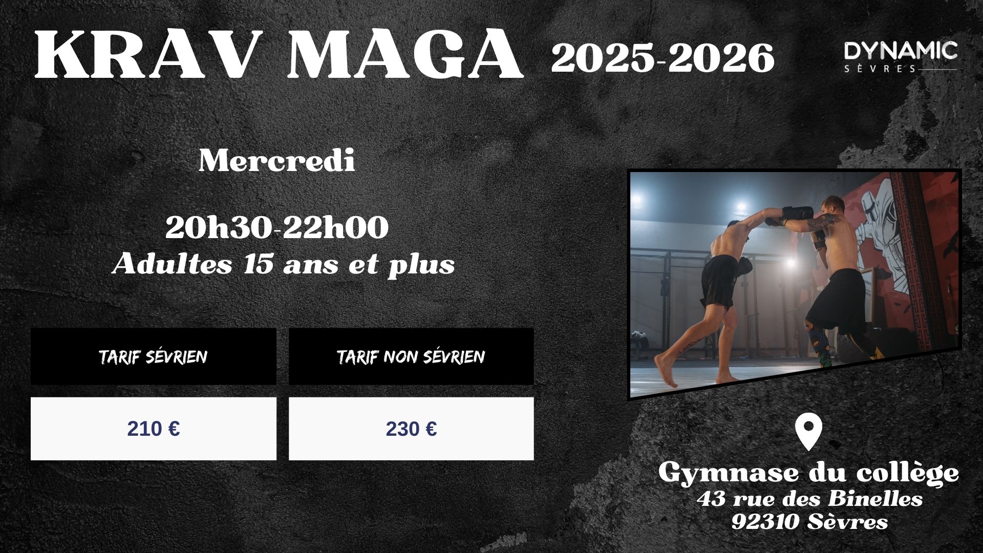 Nouveauté de la saison : le Krav Maga fait son entrée à Dynamic Sèvres ! Accessible à partir de 15 ans, cette discipline de self-défense vous enseigne des techniques simples et efficaces pour faire face à diverses situations, tout en améliorant votre condition physique.