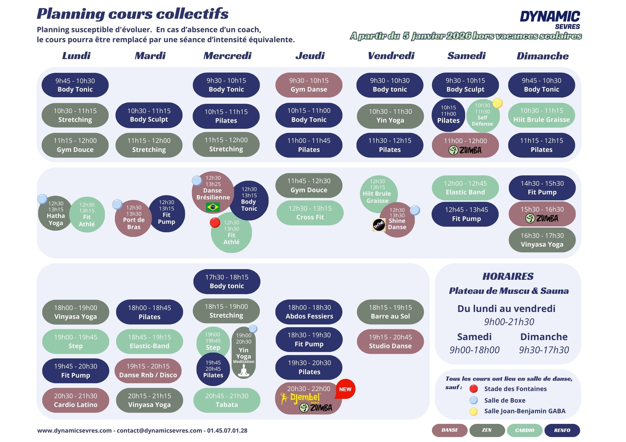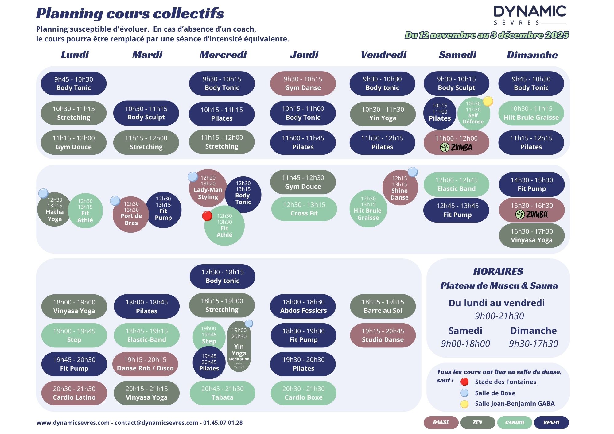 Cette formule vous donne accès à une large gamme d’activités, encadrées par des professionnels diplômés d’État, au Gymnase des Cent-Gardes (situé 45 Grande Rue à Sèvres).